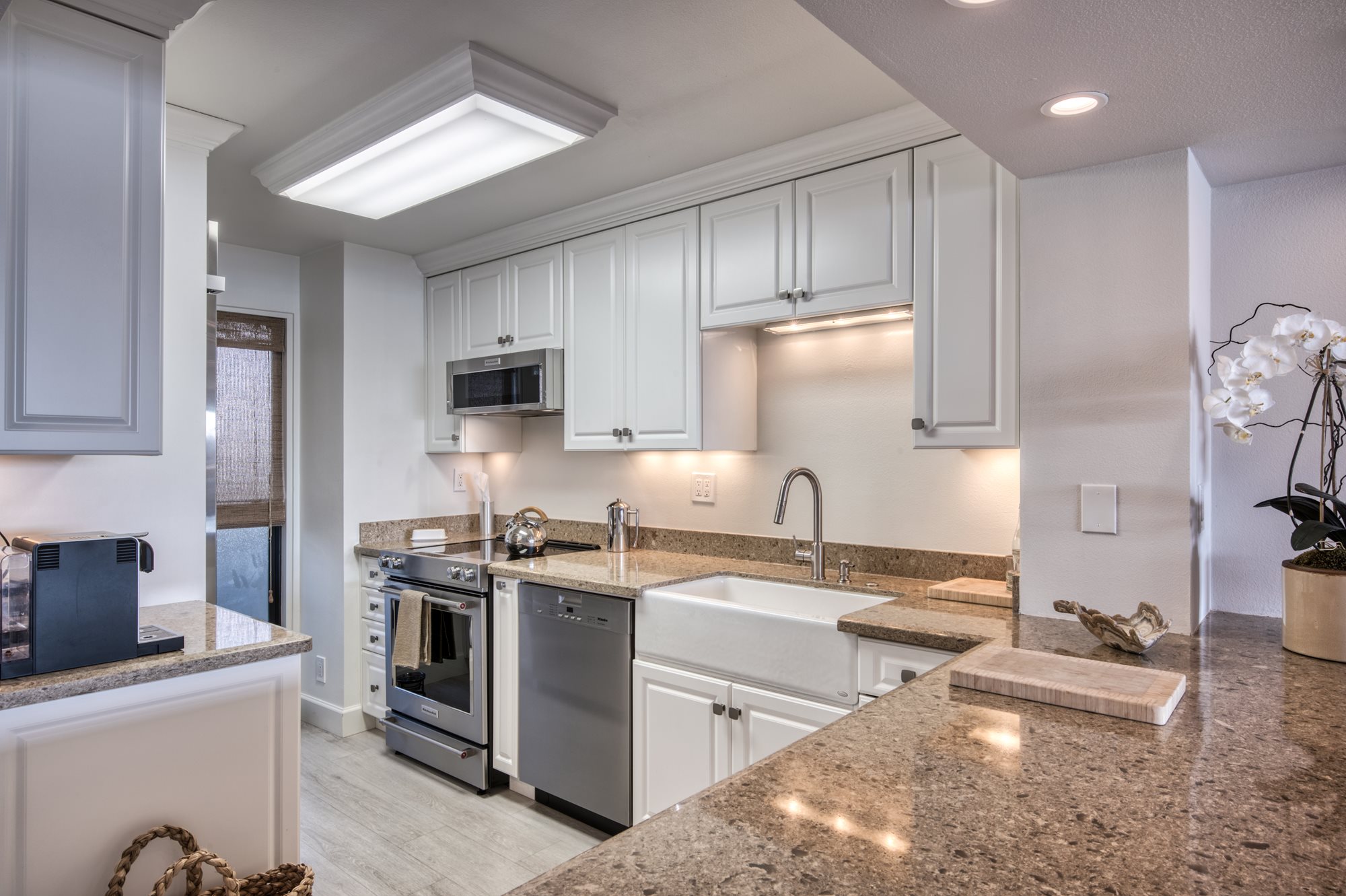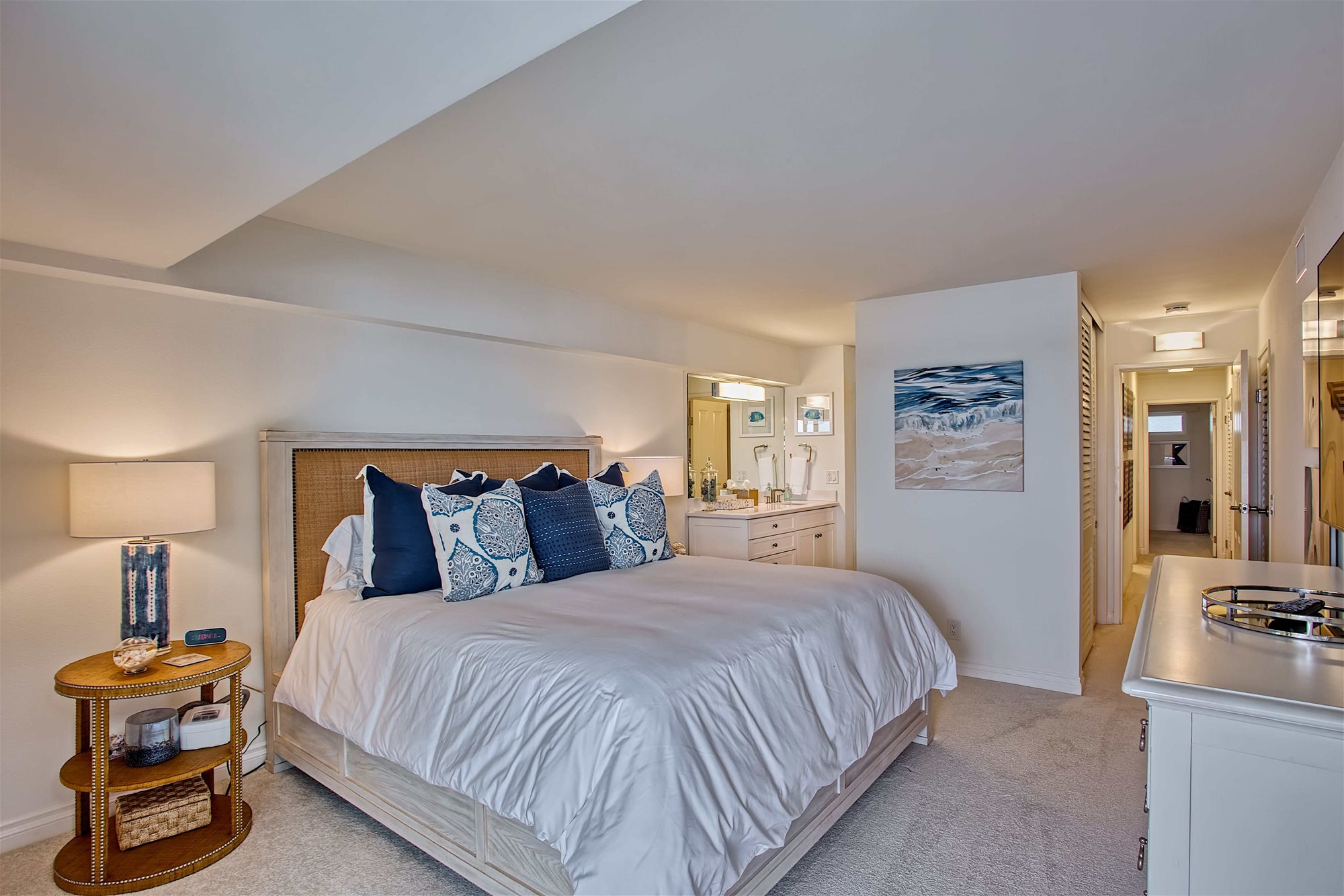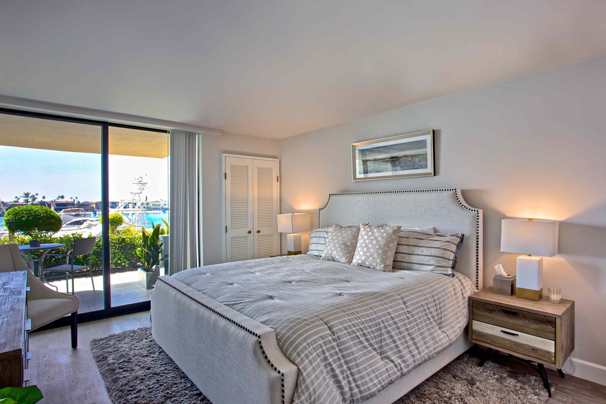 This rarely available suite is ideal for families, couples, and for hosting guests. Relax in 1,989 square feet of waterfront living space, including two bedrooms, three bathrooms and a den. You’ll enjoy a living area with extraordinary water views up and down the channel from every room, a fireplace, a washing machine and dryer, and a spacious 522-square foot wrap-around terrace which is accessible from both bedrooms and the living room.